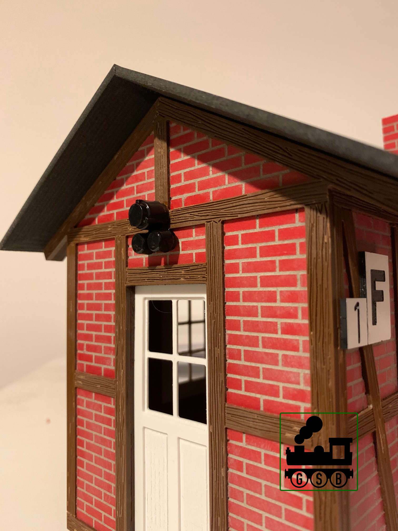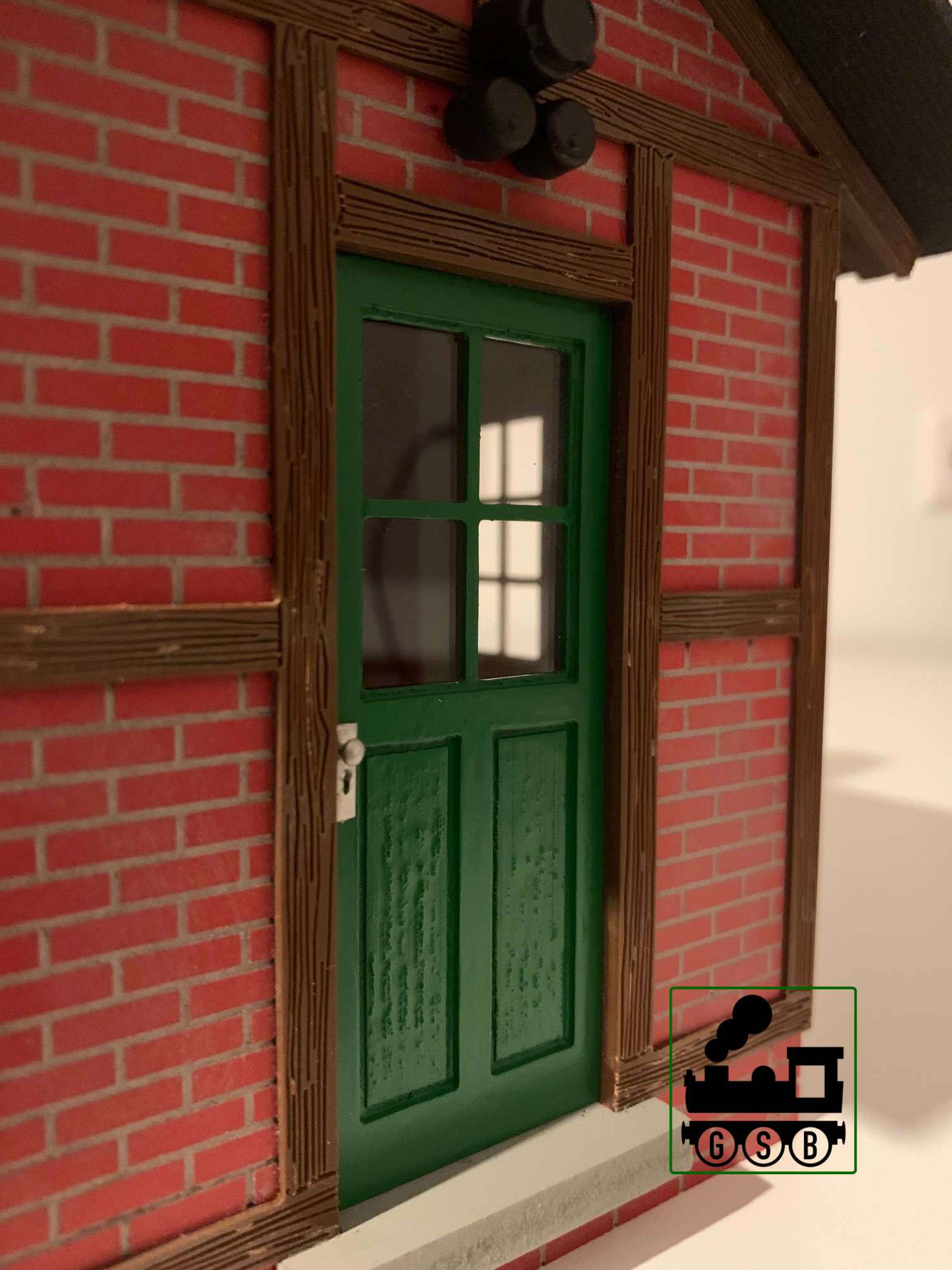 Endlich zieht es nicht mehr. Der Glaser war da und hat die Glasscheiben in Fenster und Tür eingesetzt. Und, wir haben in Eigenleistung die Tür gestrichen und ein Schloss eingebaut. Endlich kann der Streckenposten abgeschlossen werden.